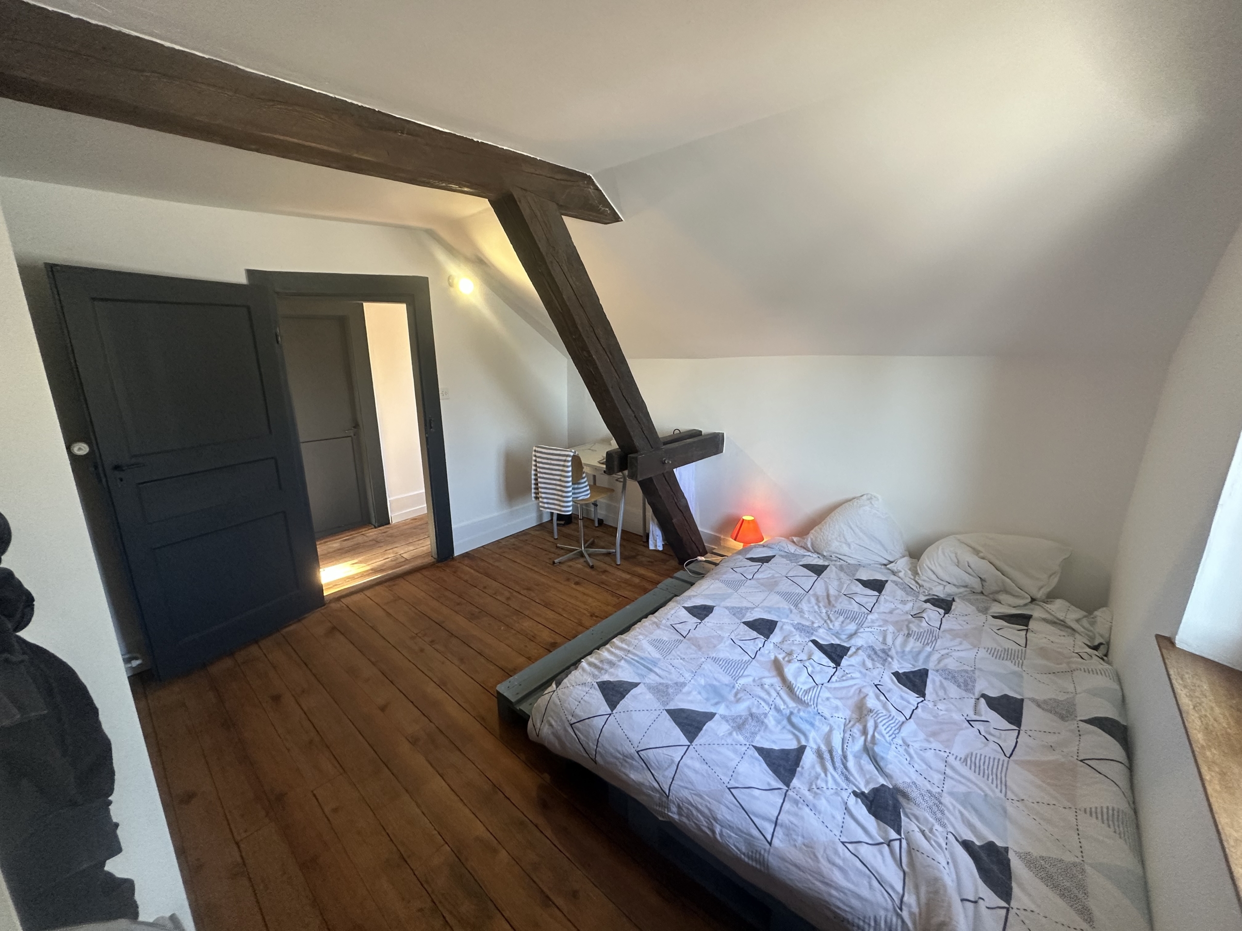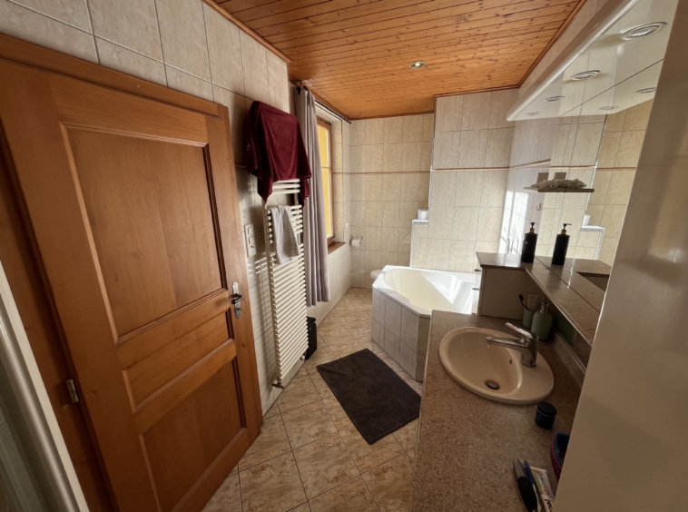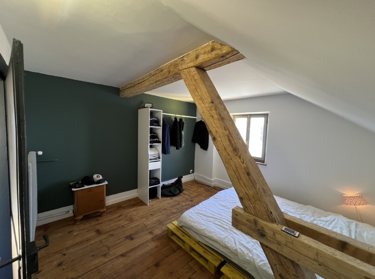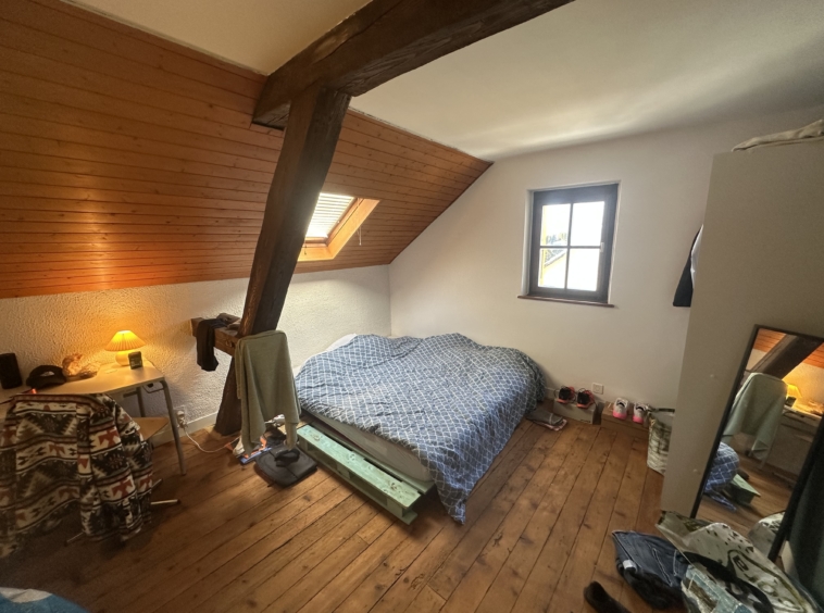 En franchissant l’entrée principale, vous serez accueilli par un séjour / salle à manger conviviale chaleureux et une cuisine fonctionnelle. Les poutres apparentes, les murs en pierre et la cheminée confèrent à ces pièces une atmosphère authentique, où l’histoire se mêle au confort moderne. Un hall d’entrée spacieux, un WC, un cellier et une chaufferie complètent ce niveau fonctionnel.