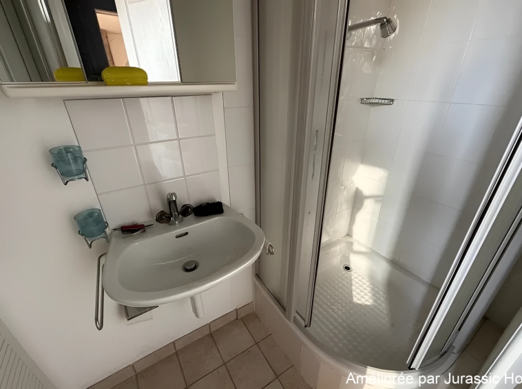 Le logement comprend deux chambres, une cuisine équipée, une salle d’eau avec douche ainsi que plusieurs espaces de rangement. Une buanderie commune est également mise à disposition des locataires.