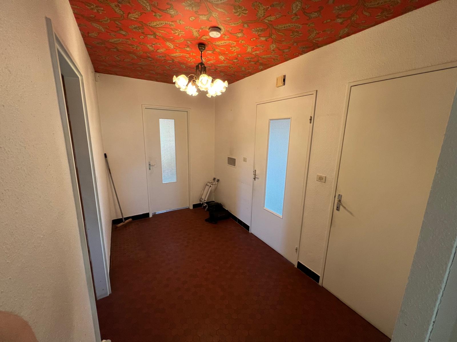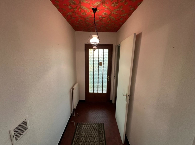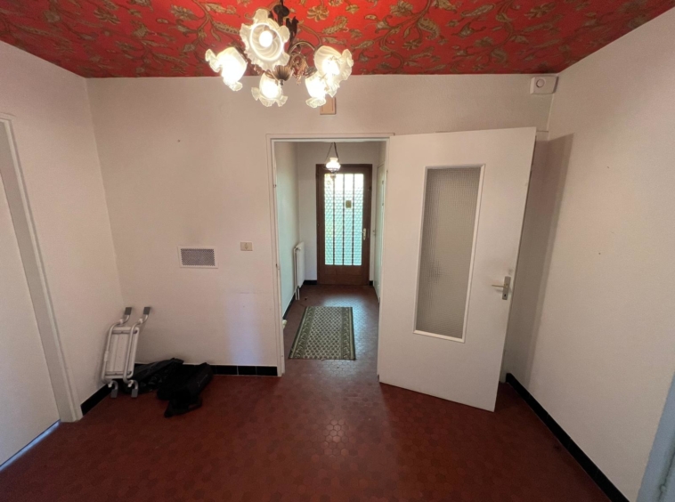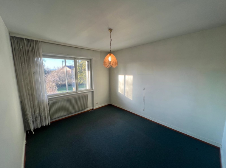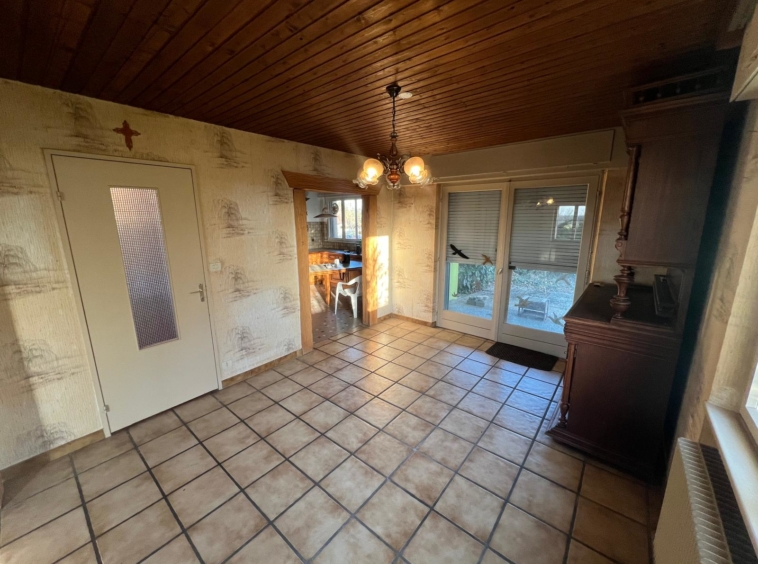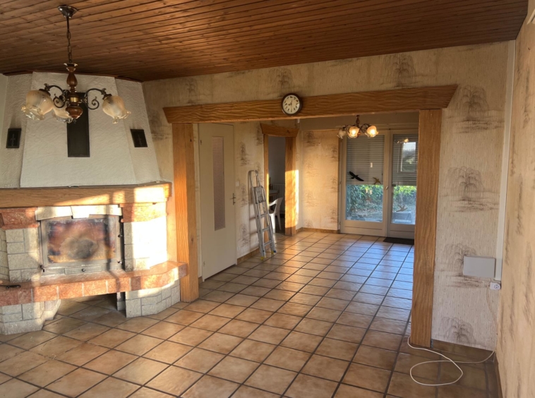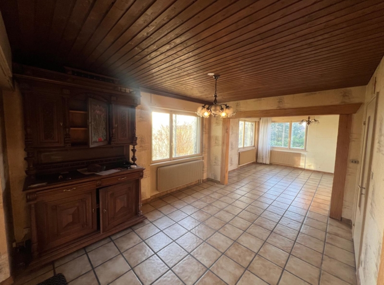 Construite en 1970, la maison s’élève sur 2 niveaux et dispose également de combles accessibles, idéals pour le rangement. Le rez-de-chaussée comprend une entrée, un vaste séjour chaleureux avec cheminée et accès à une terrasse à l’abri des regards, ainsi qu’une cuisine avec coin repas bénéficiant elle aussi d’un accès direct à la terrasse. Un couloir de distribution dessert trois chambres, une salle de bain ainsi que des WC séparés.