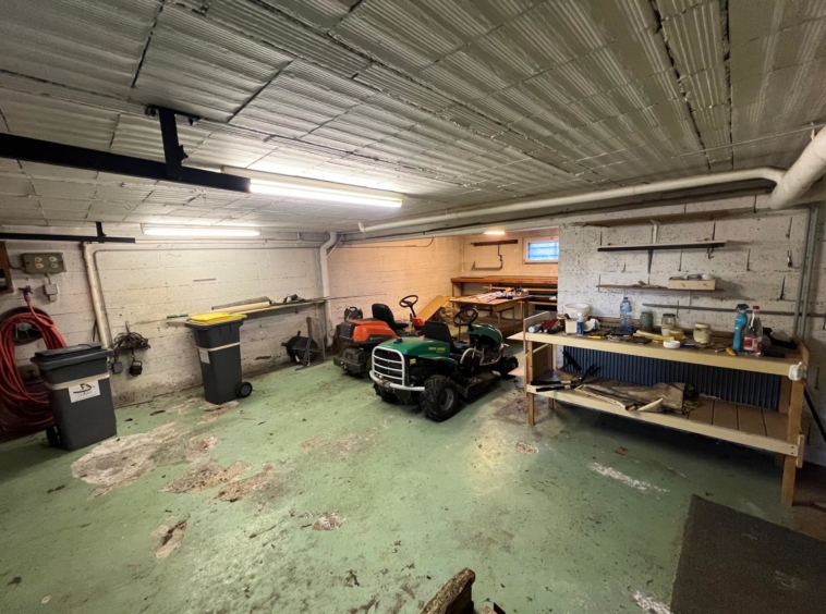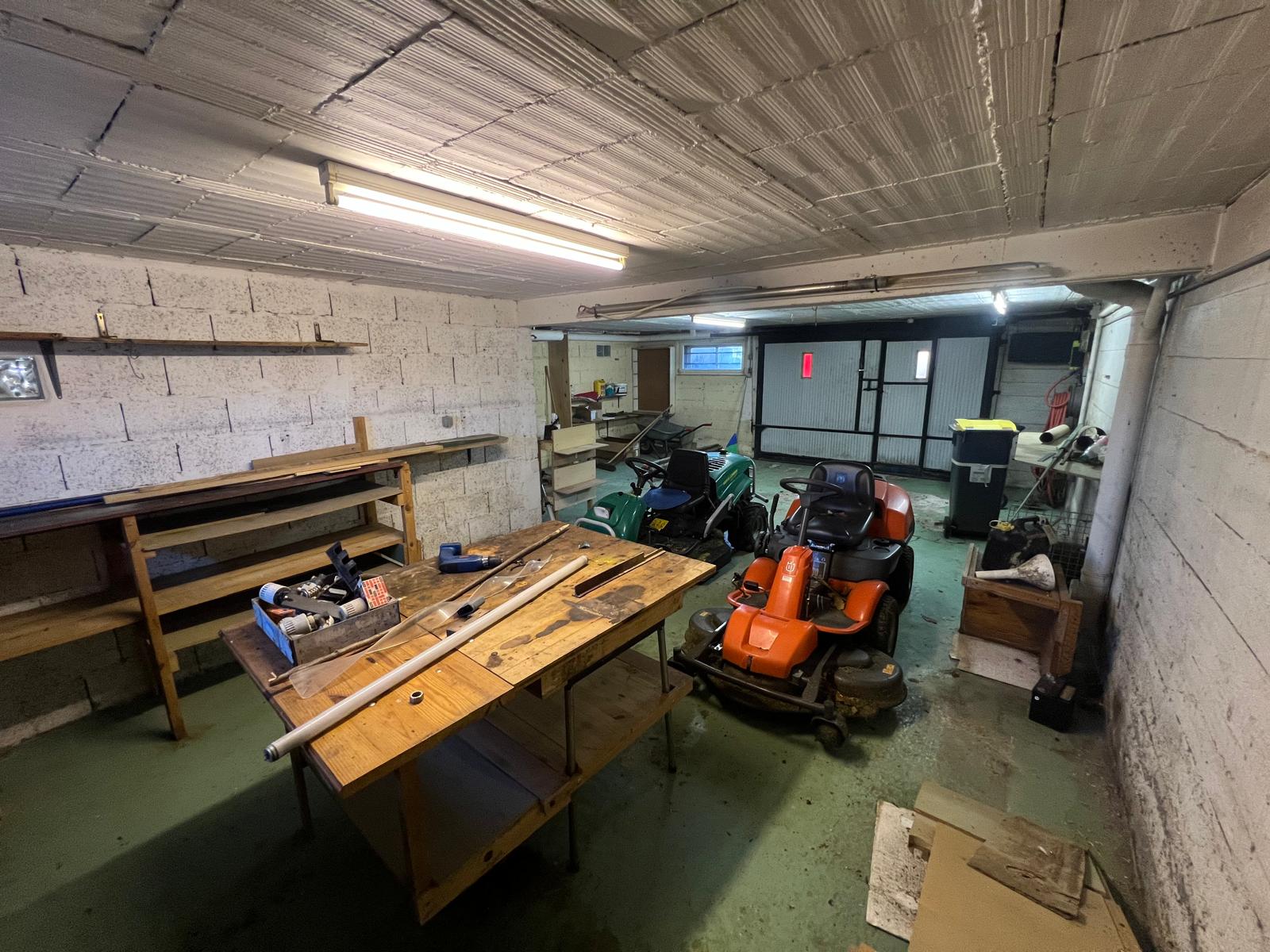 Le sous-sol propose de beaux volumes avec un grand garage et un coin atelier, une salle de bain avec espace buanderie, deux pièces supplémentaires à aménager selon les besoins, ainsi qu’un petit économat.