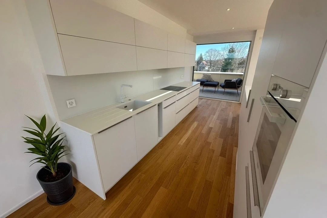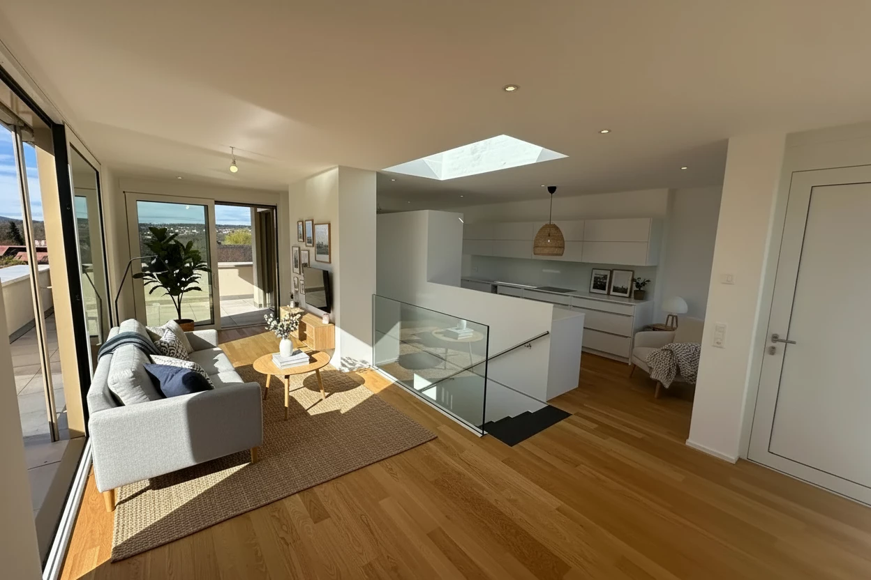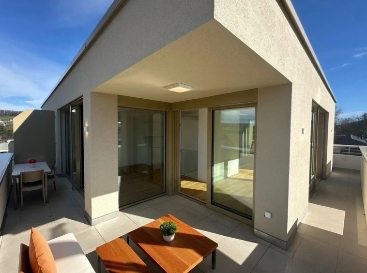 La terrasse de 36 m² constitue un véritable prolongement des espaces de vie et représente un atout majeur de ce bien. Située au dernier étage, elle offre un extérieur particulièrement appréciable, idéal pour profiter d’un bel espace de détente au quotidien. Une place de parc couverte est comprise dans le prix.