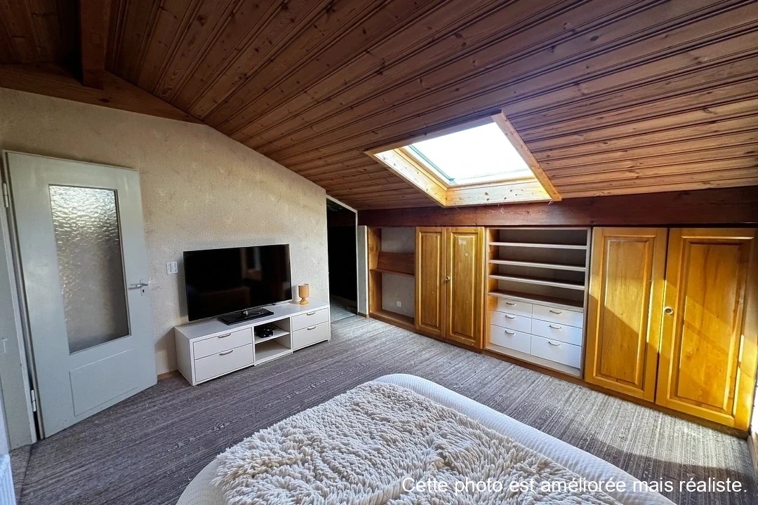 Répartie sur 3 niveaux, la maison comprend 8 pièces, dont 6 chambres, 2 salles de bains, un vaste séjour avec salle à manger, une cuisine indépendante entièrement équipée ainsi que plusieurs espaces de rangement. Le sous-sol dispose également de plusieurs locaux utiles, dont une cave, un local technique et une grande pièce polyvalente pouvant servir de salle de loisirs, atelier ou espace de rangement.