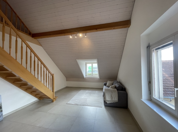 Situé au 2ème étage d’un immeuble bien entretenu avec ascenseur, ce superbe appartement en duplex de 4.5 pièces séduit immédiatement par ses volumes généreux et sa luminosité exceptionnelle.