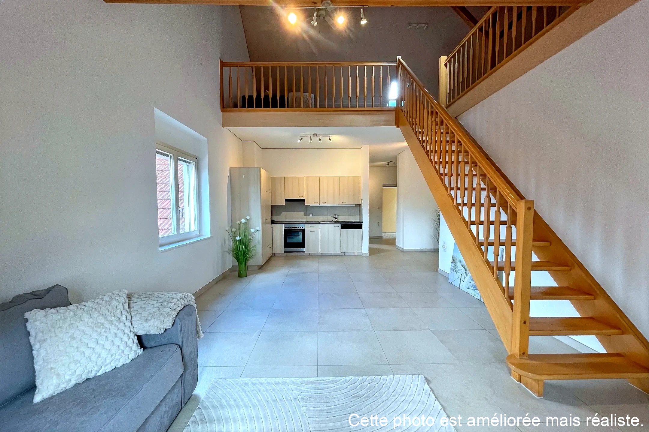 Dès l’entrée, vous découvrez un spacieux séjour baigné de lumière naturelle, sublimé par une belle hauteur sous plafond et une agréable ouverture sur une mezzanine. Cet espace de vie convivial s’ouvre sur une cuisine moderne et fonctionnelle, parfaitement intégrée.