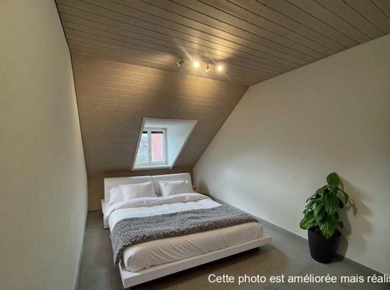 Les matériaux chaleureux, notamment les éléments en bois et les volumes sous toiture, confèrent à ce bien une atmosphère à la fois moderne et accueillante.