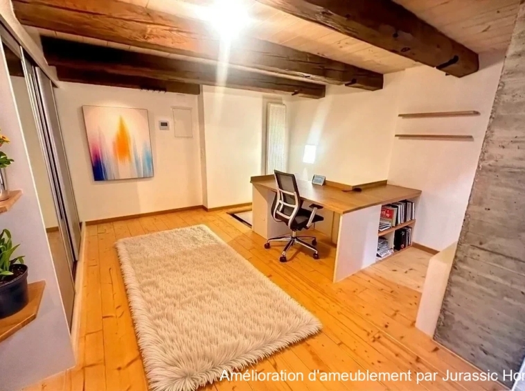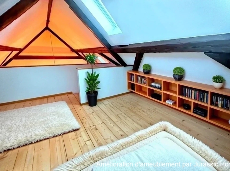 Les volumes ouverts, l’agencement en duplex et l’atmosphère chaleureuse confèrent à ce logement un cachet rare, idéal pour une personne seule ou un couple à la recherche d’un lieu de vie atypique.