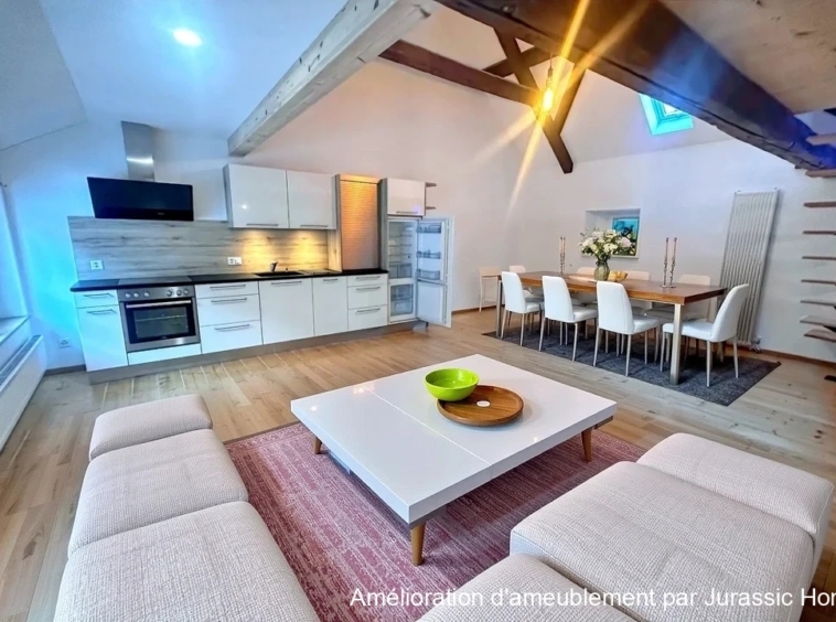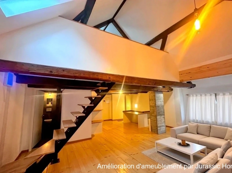 This beautiful 2.5-room duplex loft, located on the third floor, is set in the heart of Porrentruy’s old town and offers a unique and contemporary living atmosphere.