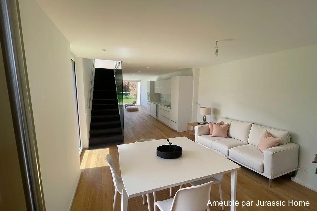 Avec environ 114 m² habitables, ce bien offre des volumes généreux, une distribution fluide et une excellente luminosité. Les finitions sont modernes, soignées et l’ensemble du logement est dans un état impeccable.