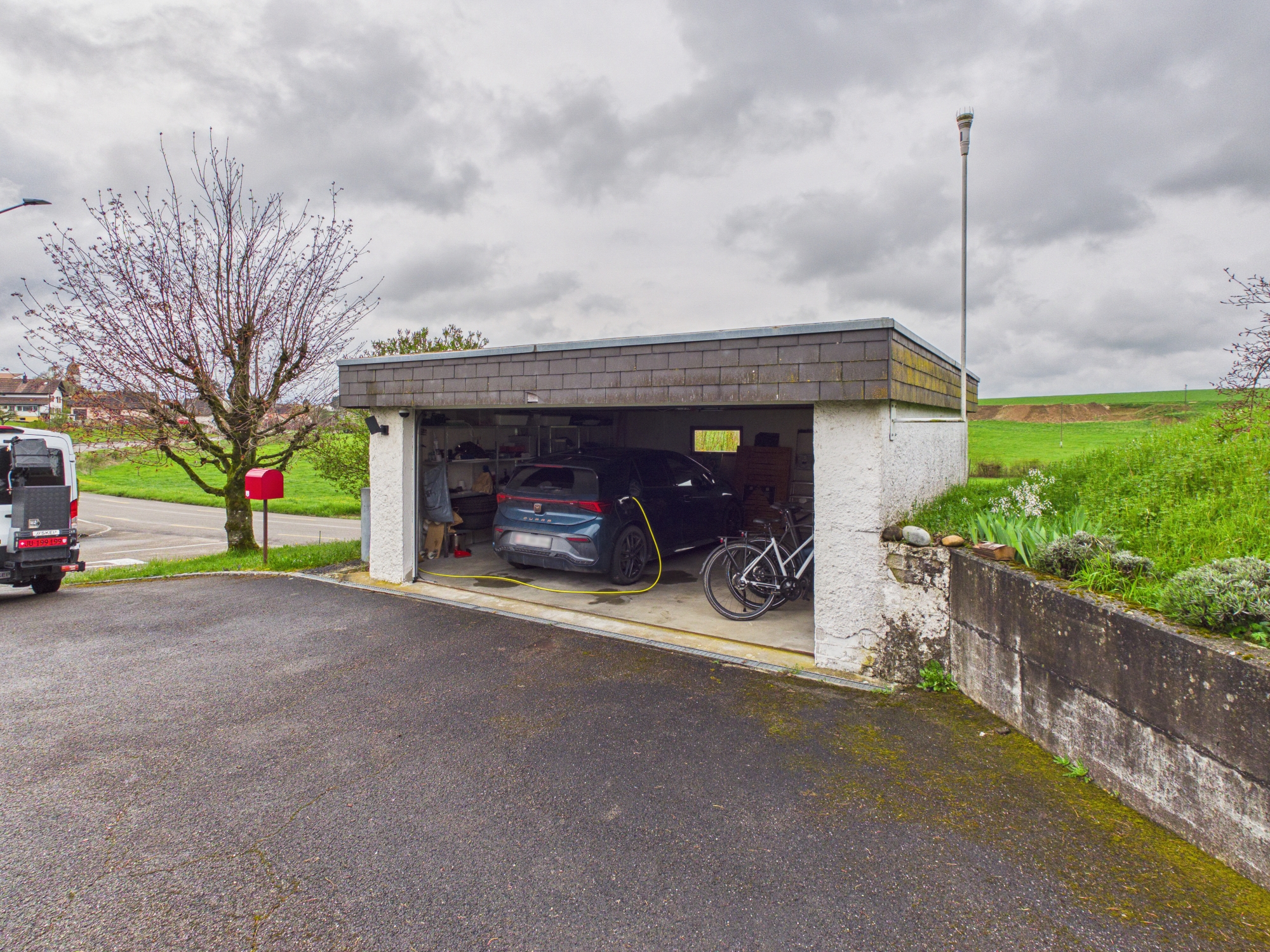 Elle bénéficie d’un grand garage de 38 m², idéal pour accueillir votre véhicule tout en offrant un espace de rangement supplémentaire.