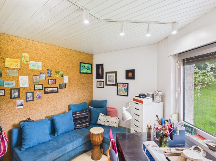 La maison se compose de quatre chambres, dont trois situées à l’étage, offrant de belles possibilités d’aménagement pour une famille ou pour créer des espaces de travail.
