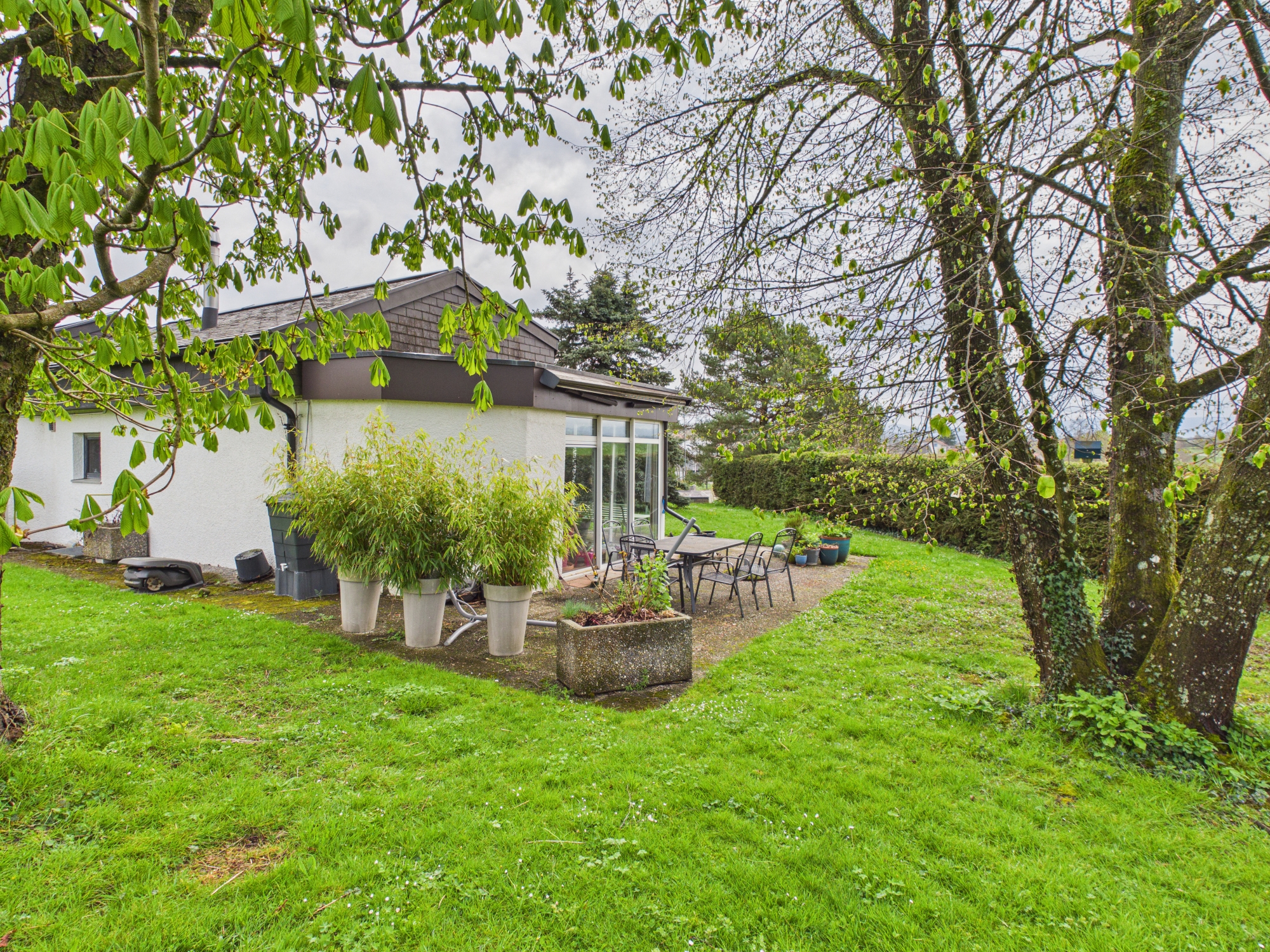 À l’extérieur, vous profiterez d’un magnifique jardin, parfait pour les moments de détente en famille ou entre amis, ainsi que d’une véranda lumineuse, pouvant être aménagée selon vos envies : espace de lecture, jardin d’hiver ou coin repas.
