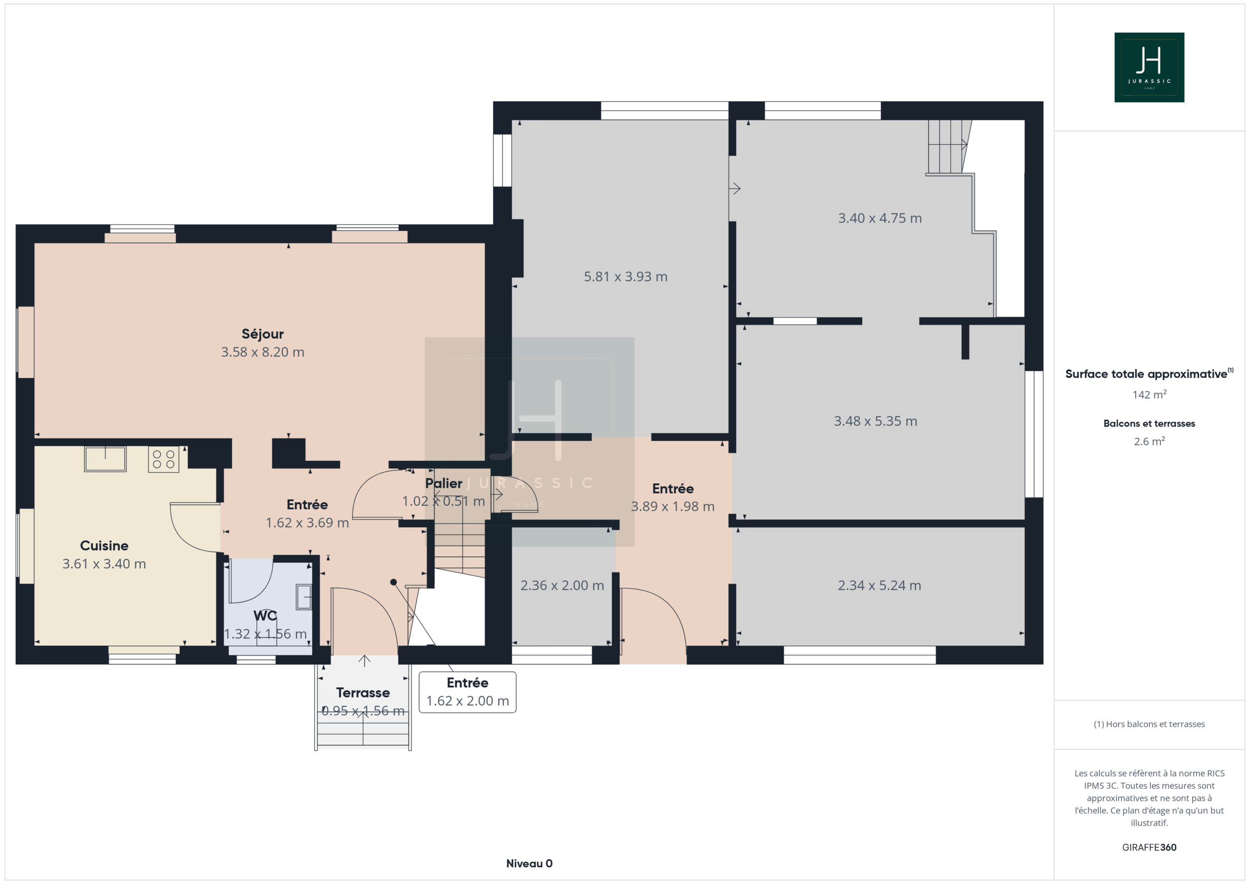 Total habitable chauffé estimé : 109,5 m² ≈ 110 m²