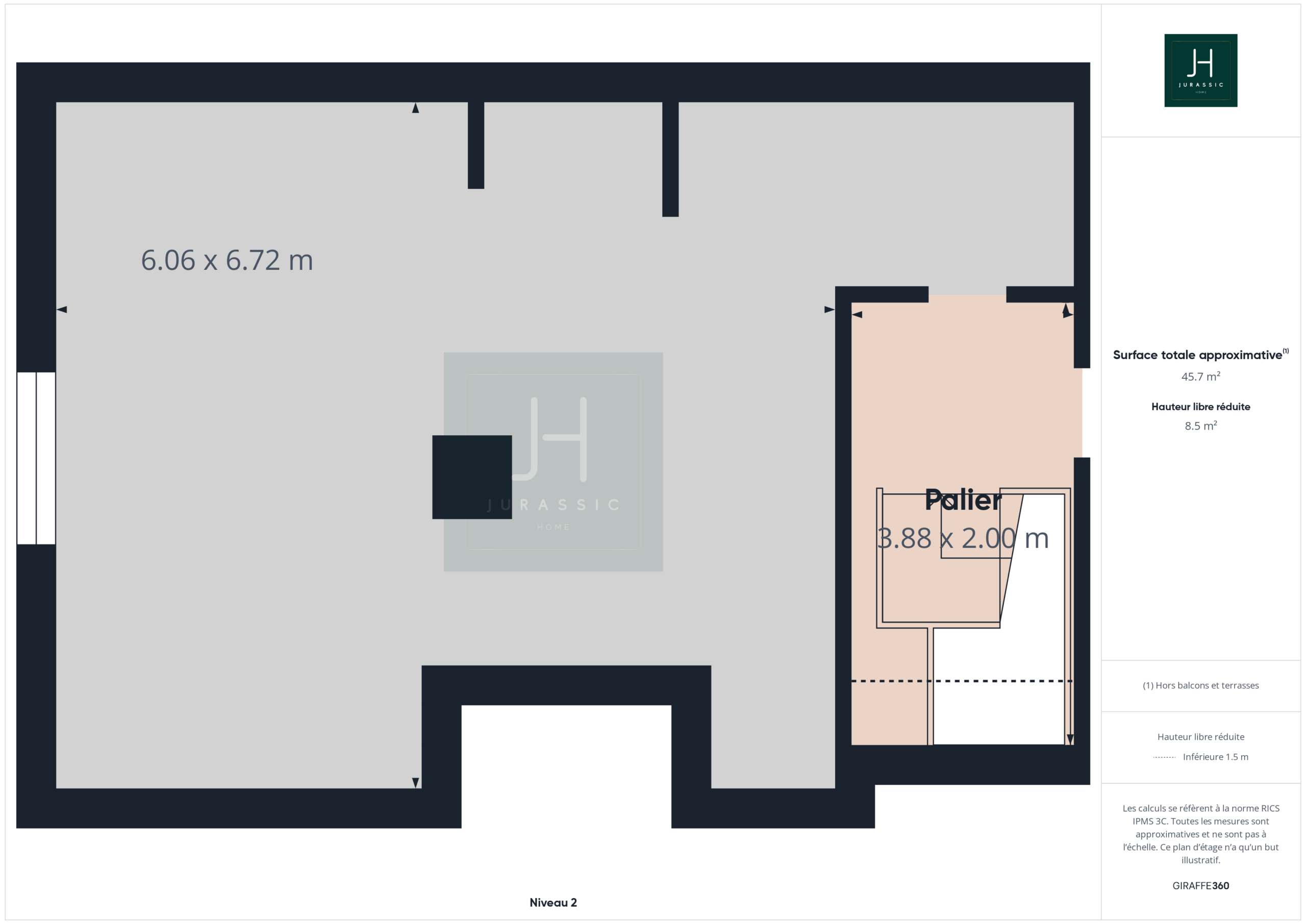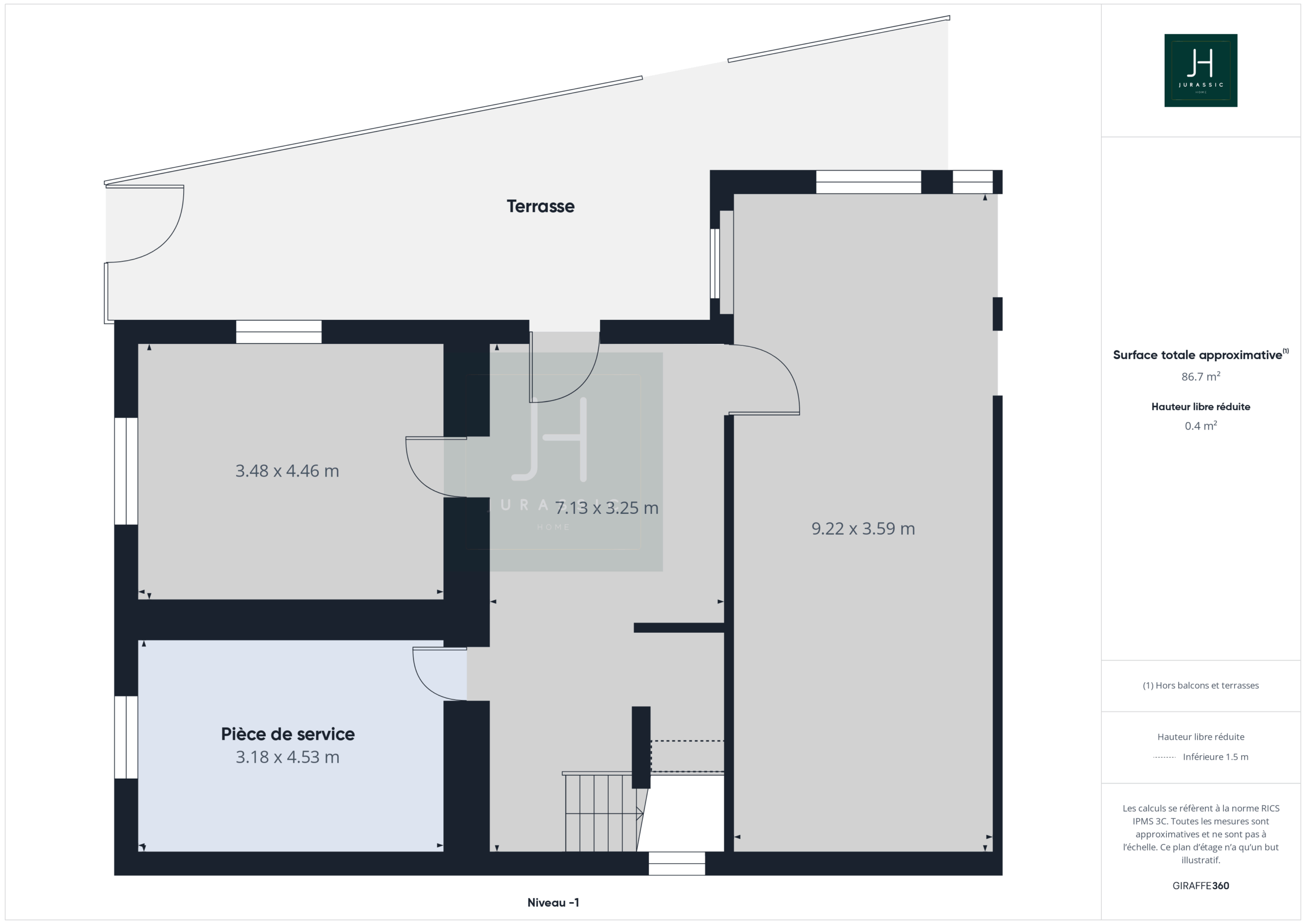 (ancienne estimation partielle ~86 m² ; l’empreinte complète offre env. 150 m² exploitables)
