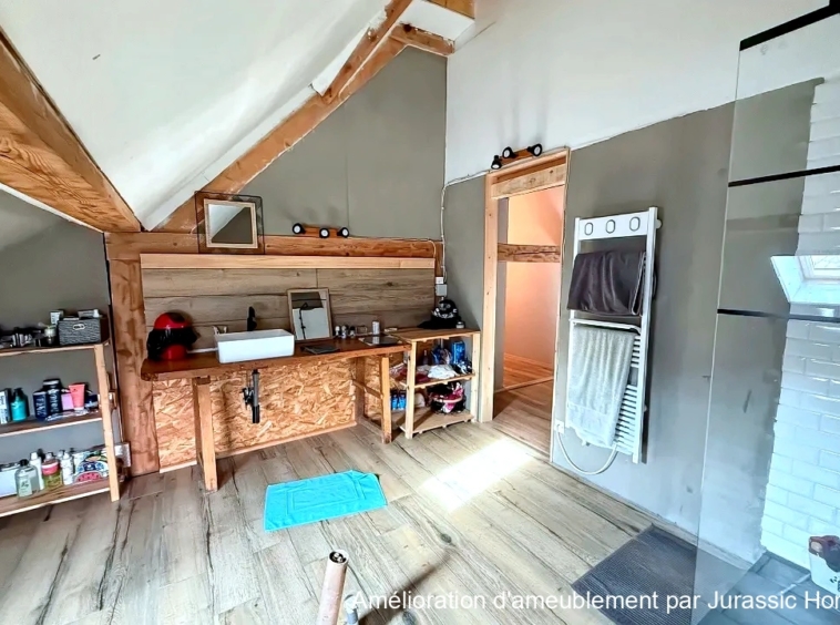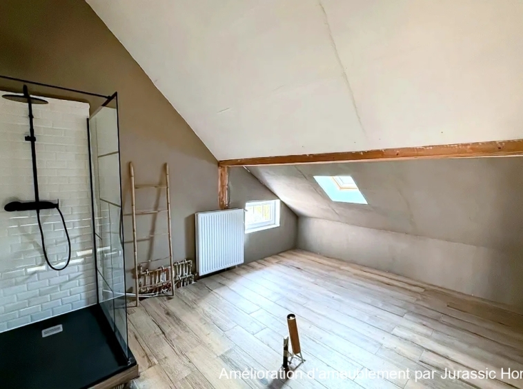 Maison familiale immédiatement habitable (ambiance chaleureuse, duplex fonctionnel) + grande zone à rénover avec volumes et hauteurs > 3,50 m.