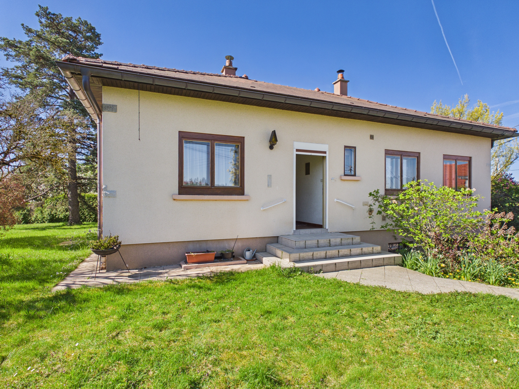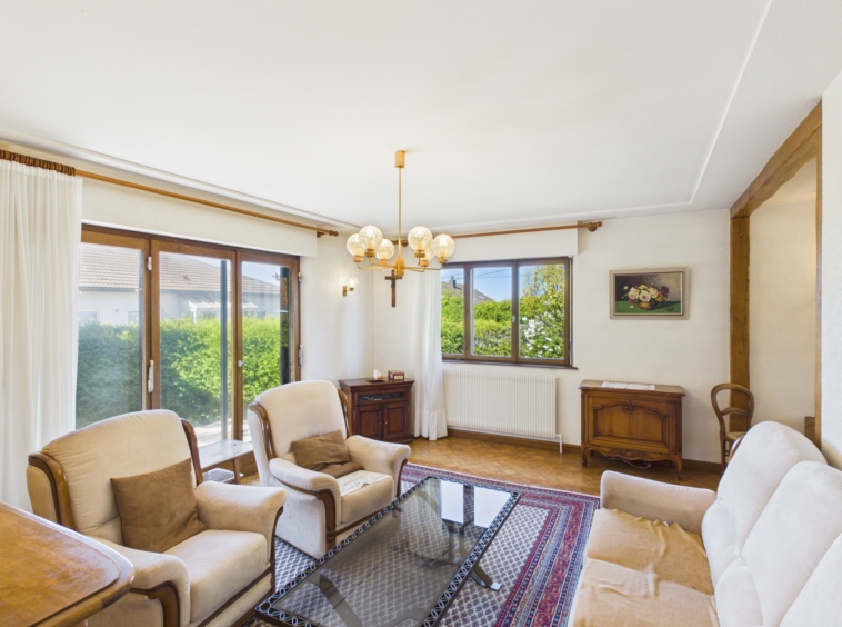 Située sur la commune d’Abbévillers, à seulement une minute de la frontière suisse, cette maison individuelle de plain-pied bénéficie d’un emplacement stratégique et d’un environnement agréable.
